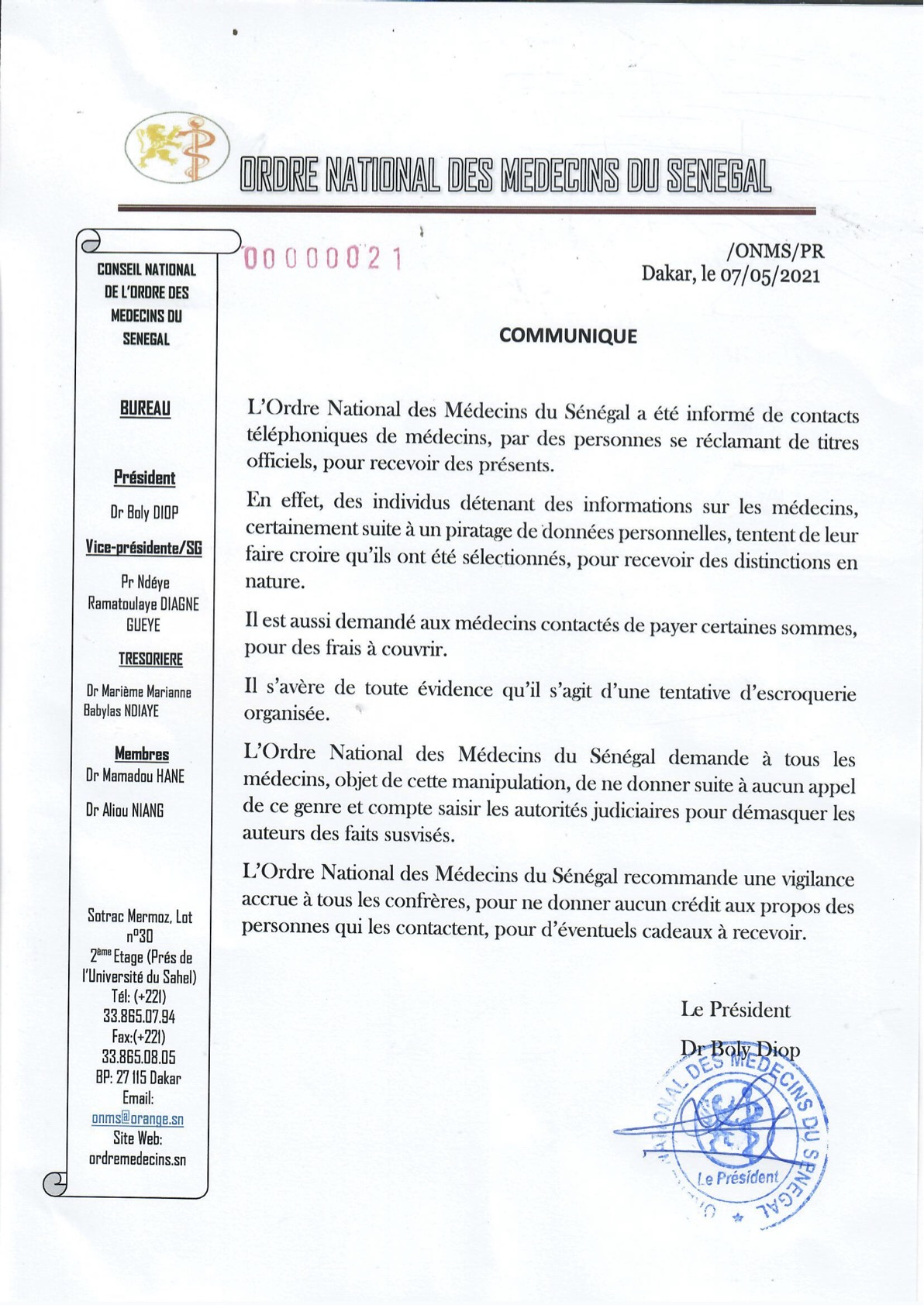 Communiqué du 12 mai 2021