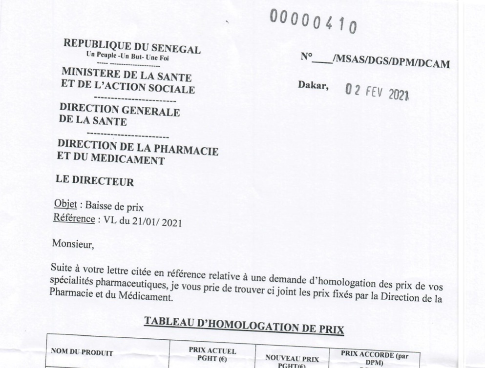 tableau d’Homologation de prix