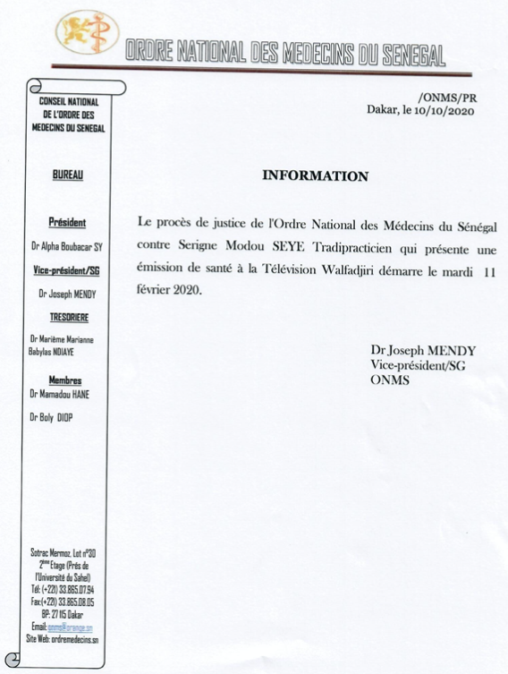 Le présent procès-verbal sera publié au « Soleil » et affiché partout où besoin sera, notamment sur le site du Ministère de la Santé et de l’Action sociale à l’adresse suivante: http://www.sante.gouv.sn/ et le site de l’Ordre des médecins du Sénégal à l’adresse suivante: https://www.ordremedecins.sn